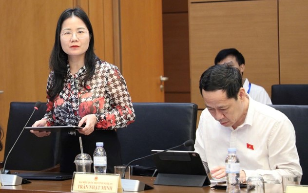 Đại biểu Nguyễn Thị Minh Tú, Đoàn ĐBQH tỉnh Nghệ An, phát biểu. Ảnh: Hồng Quân Khi con số chưa đồng nhất với thụ hưởng