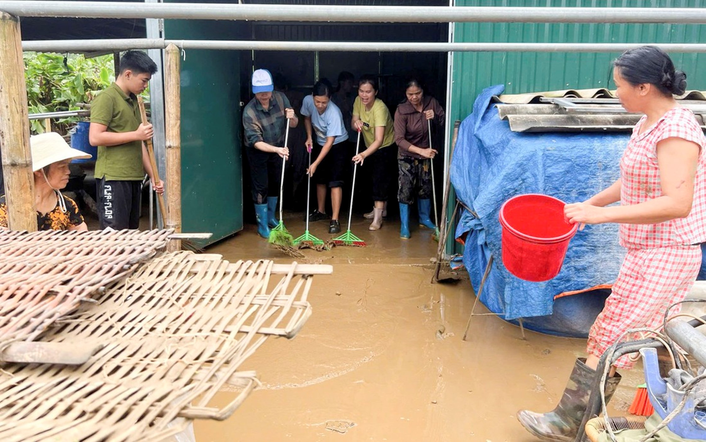 Hội viên, phụ nữ Cao Bằng lội bùn dọn dẹp nhà cửa, hỗ trợ di dời đồ đạc và vệ sinh đường làng ngõ xóm sau lũ